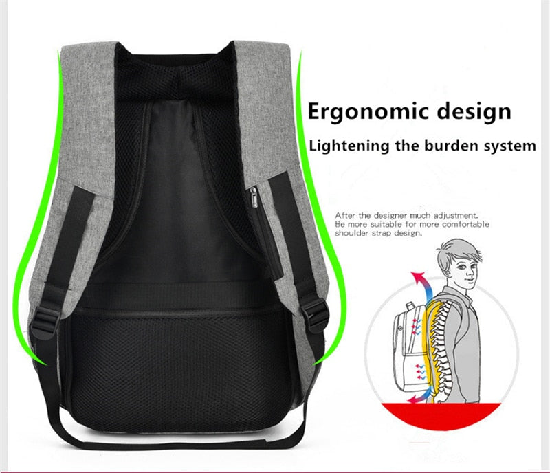 حقيبة ظهر مكافحة سرقة متعددة الوظائف سوداء مع منفذ USB للشحن